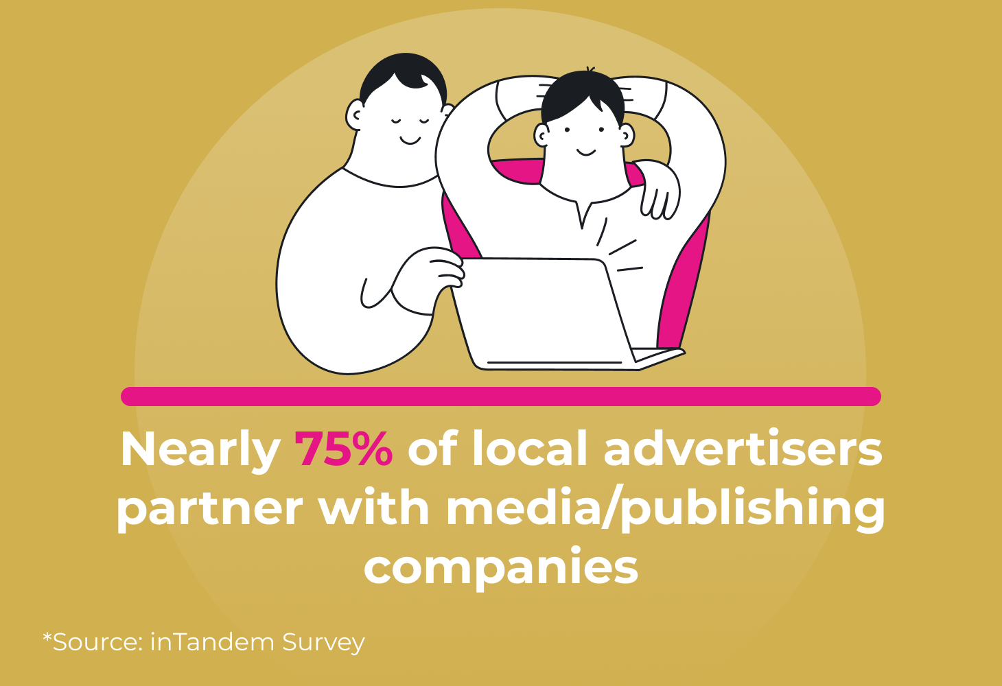 Right now, about 75% of local businesses are partnering with media companies like yours, either regularly or from time to time. Most of them are genuinely pleased with the partnership, rating their satisfaction at an 8 out of 10 or higher, and 59% report that their media partner successfully boosted their brand exposure.