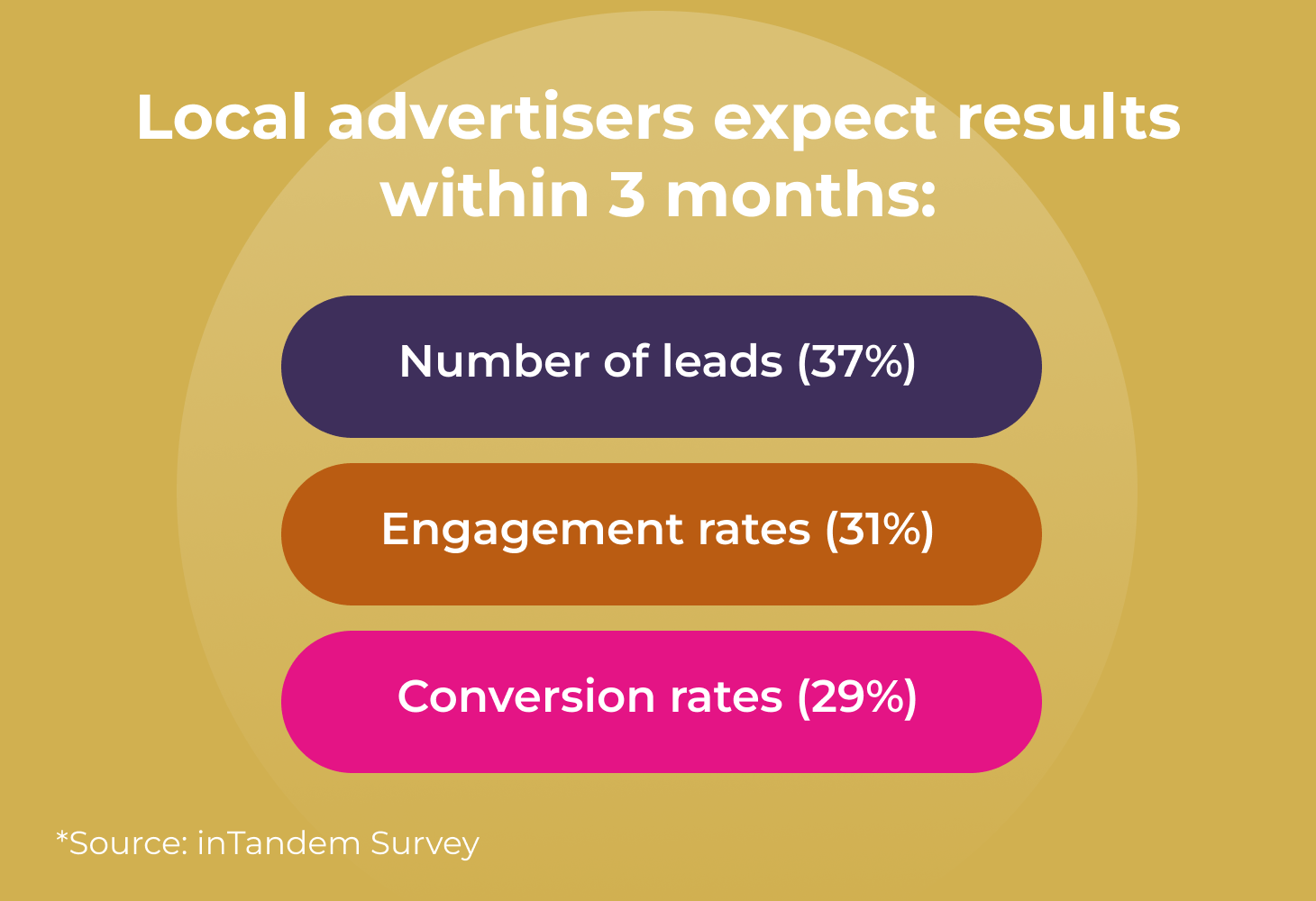 Perhaps one of the main challenges lies in heightened expectations and very specific ideas about what success looks like. Local advertisers expect to see the value of their publishing partners’ services, paying close attention to the number of leads (37%), engagement rates (31%), and conversion rates (29%). They want concrete business outcomes, not fuzzy metrics about impressions or reach, and they want to see these results within three months.