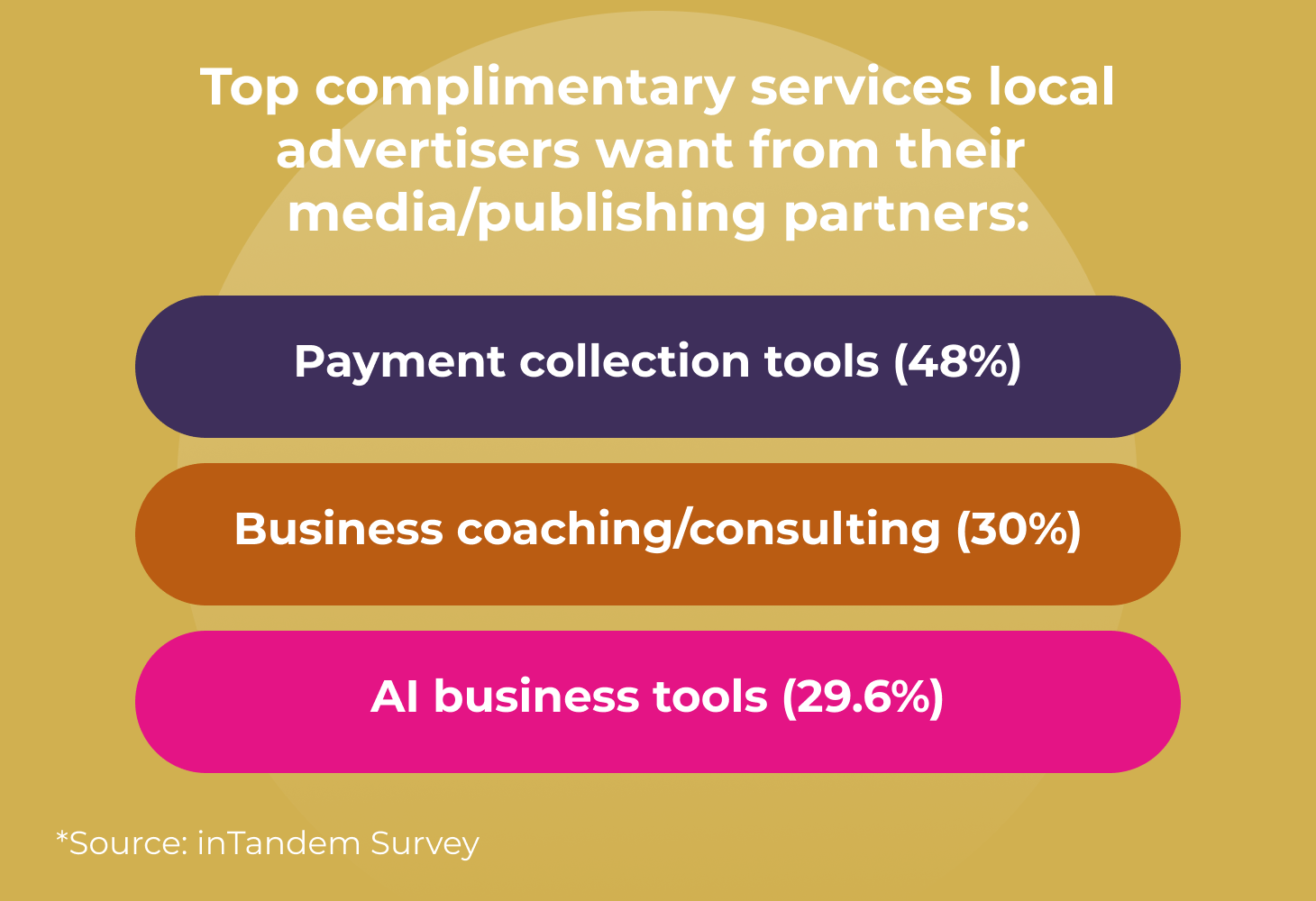 Survey responses also revealed something enlightening about local businesses’ willingness to consume complementary services from their publishing partners. It seems that their strong reputations carry over when local businesses think about running their overall business operations. When asked what they wish their media partners would provide, they didn’t ask for fancier ads or more sophisticated campaigns.